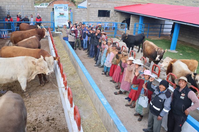 En el distrito de Quilcapuncu, provincia de San Antonio de Putina, se llevรณ a cabo la entrega de dos nuevos mรณdulos de engorde en el marco del Proyecto Vacunos Carne del Programa de Apoyo al Desarrollo Rural Andino – PRADERA, beneficiando a las asociaciones de productores agropecuarios San Isidro Labrador y FLIARS Los Alegres.