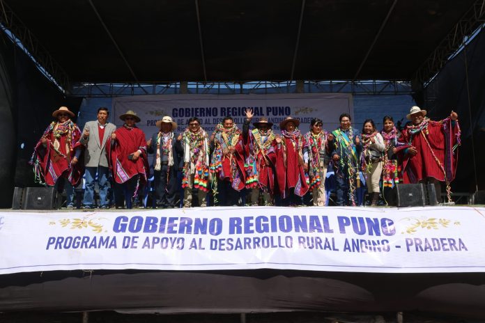 El entusiasmo de los productores ganaderos se hizo sentir en la zona norte de la región, donde el Gobierno Regional de Puno, a través del Proyecto Vacunos Carne del Programa Especial PRADERA, entregó molinos picadoras, balanzas grameras, kits veterinarios y 41 nuevos módulos demostrativos de engorde vacuno. Con esta acción, la región altiplánica alcanza 240 módulos implementados, fortaleciendo de manera decisiva la producción pecuaria.