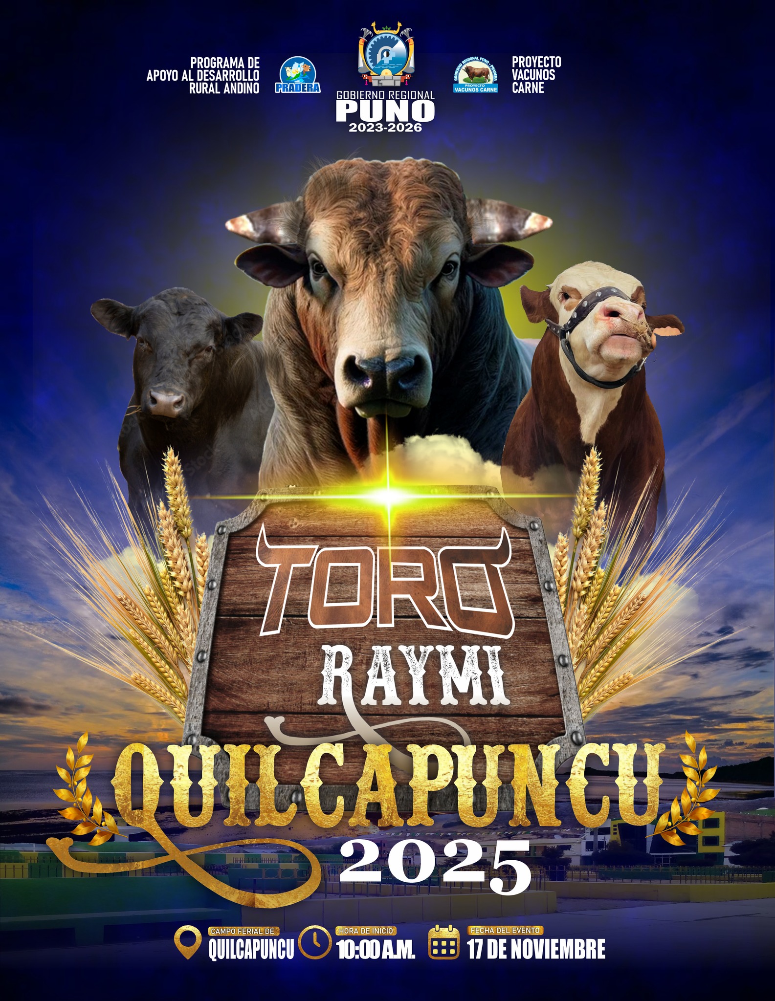 El Gobierno Regional de Puno, a través del Proyecto Vacunos de Carne – PRADERA, invita a productores, ganaderos y público en general a participar en esta importante celebración que promueve la mejor genética bovina y el fortalecimiento de la ganadería regional.